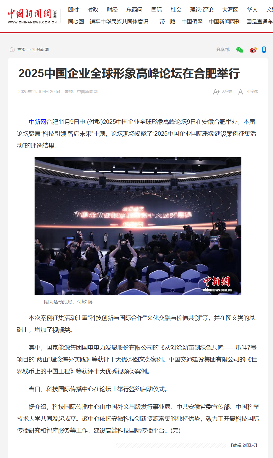 中国新闻网:2025中国企业全球形象高峰论坛在合肥举行中新网合肥11月9日电 (付敏)2025中国... [详情]