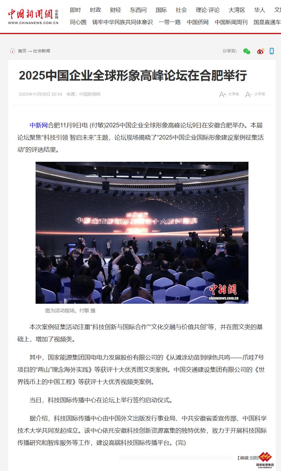 中国新闻网:2025中国企业全球形象高峰论坛在合肥举行