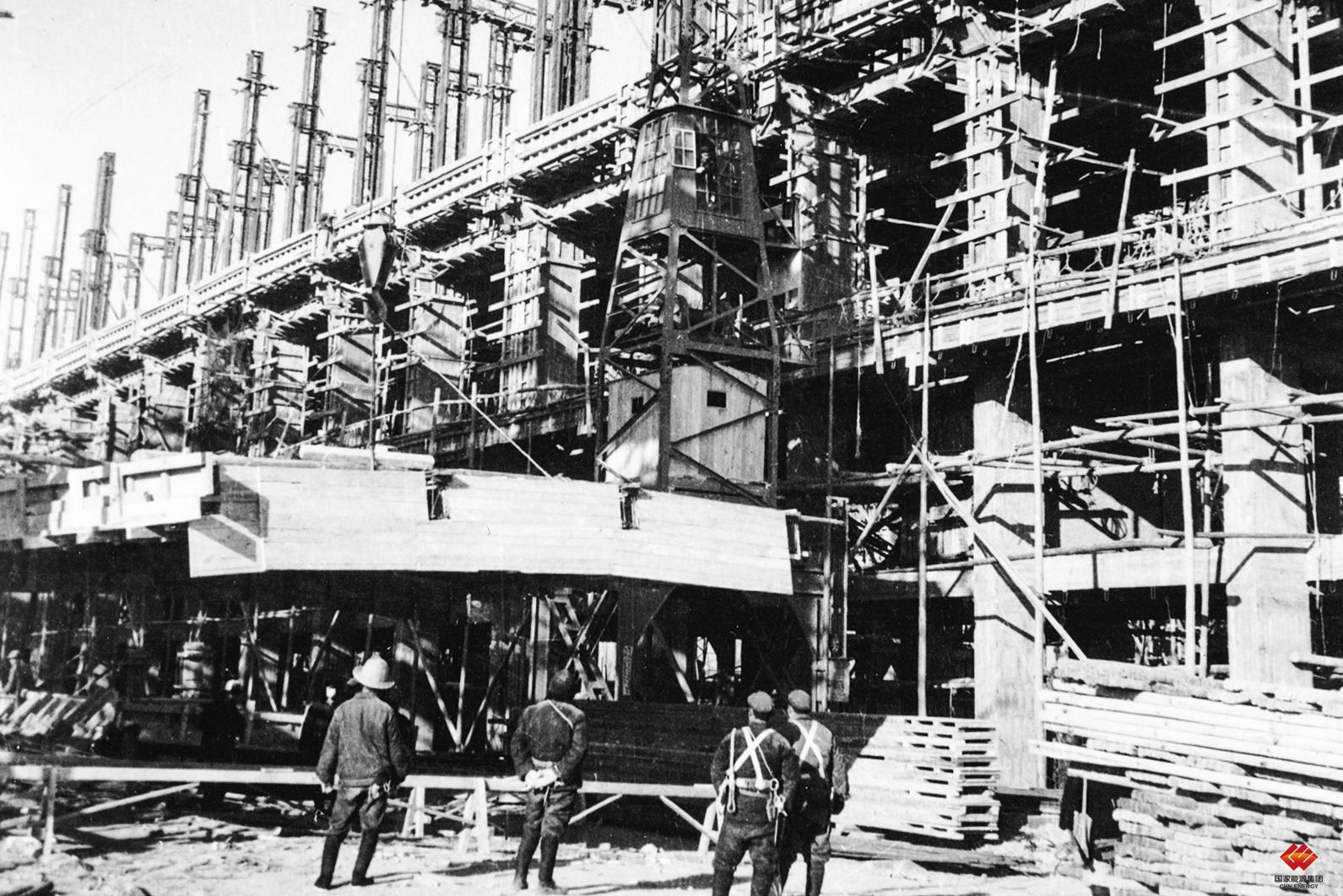 1956年,北京第一热电厂厂房主体结构建设中。国电电力北京热电前身是始建于1955年的北京第一热电厂,属于新中国“第一个五年计划”中“156项重点工程”之一。(资料图片)