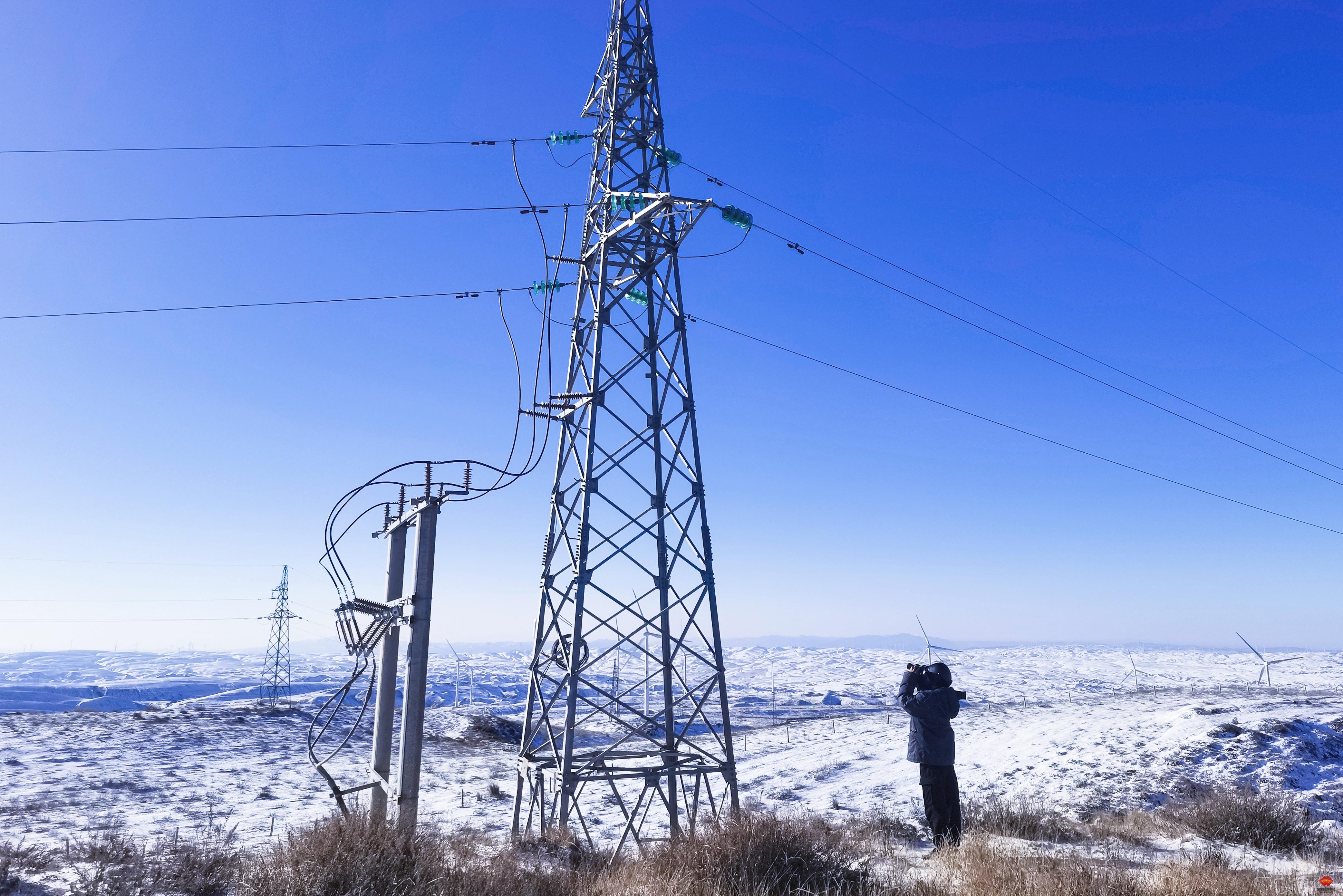 图为该公司香山风电场运维人员大雪后排查输电线路。雪后气温骤降,该公司严格落实极端天气应急预案,全面开展特殊天气巡视,实时掌握设备覆冰、冰冻情况,最大程度降低低温天气影响。张欣 摄